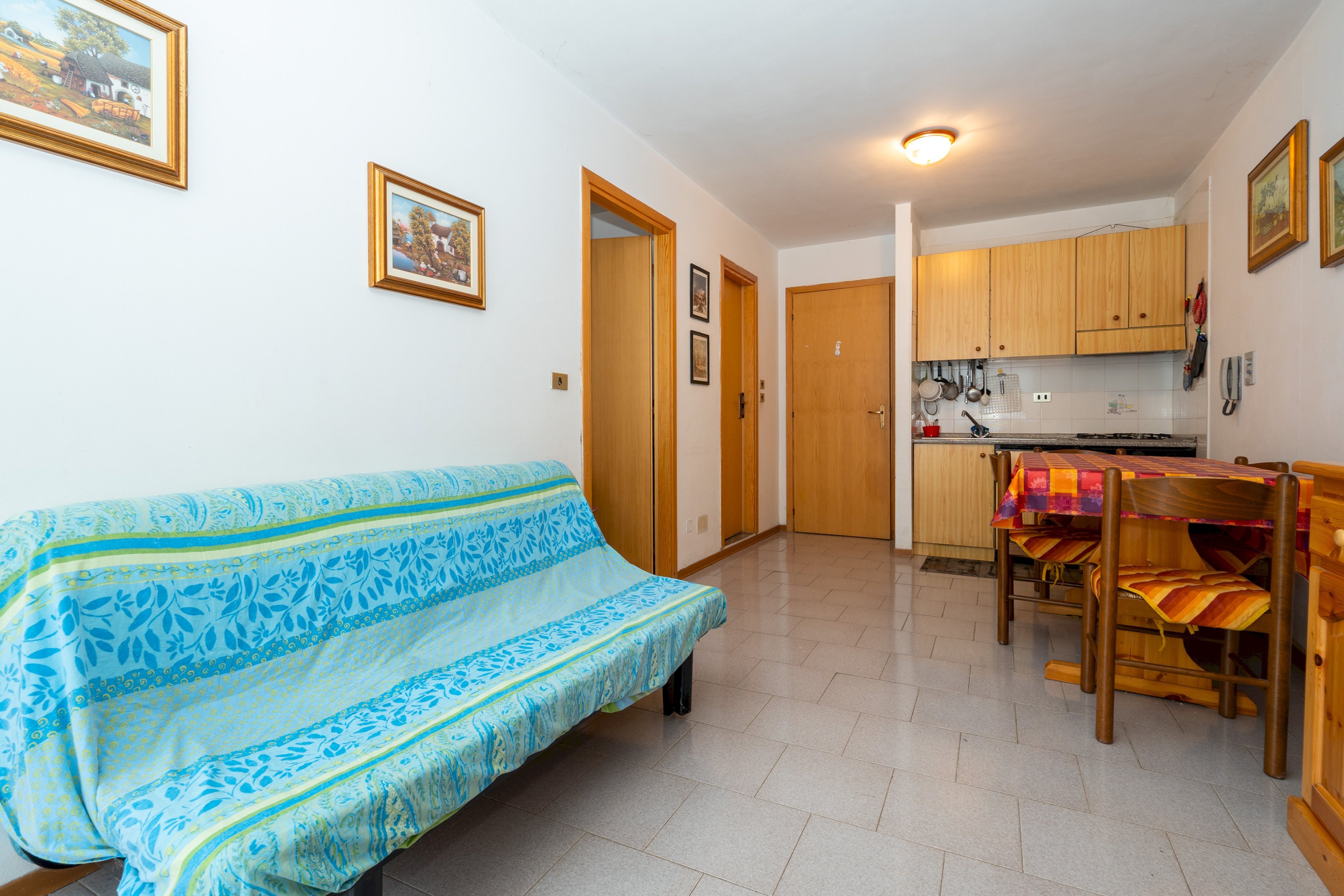 L’ingresso si apre su un luminoso soggiorno con angolo cottura, uno spazio intimo e funzionale dove rilassarsi e condividere momenti di quotidianità. La camera da letto offre tranquillità e comfort, mentre il bagno completa la zona notte con praticità.