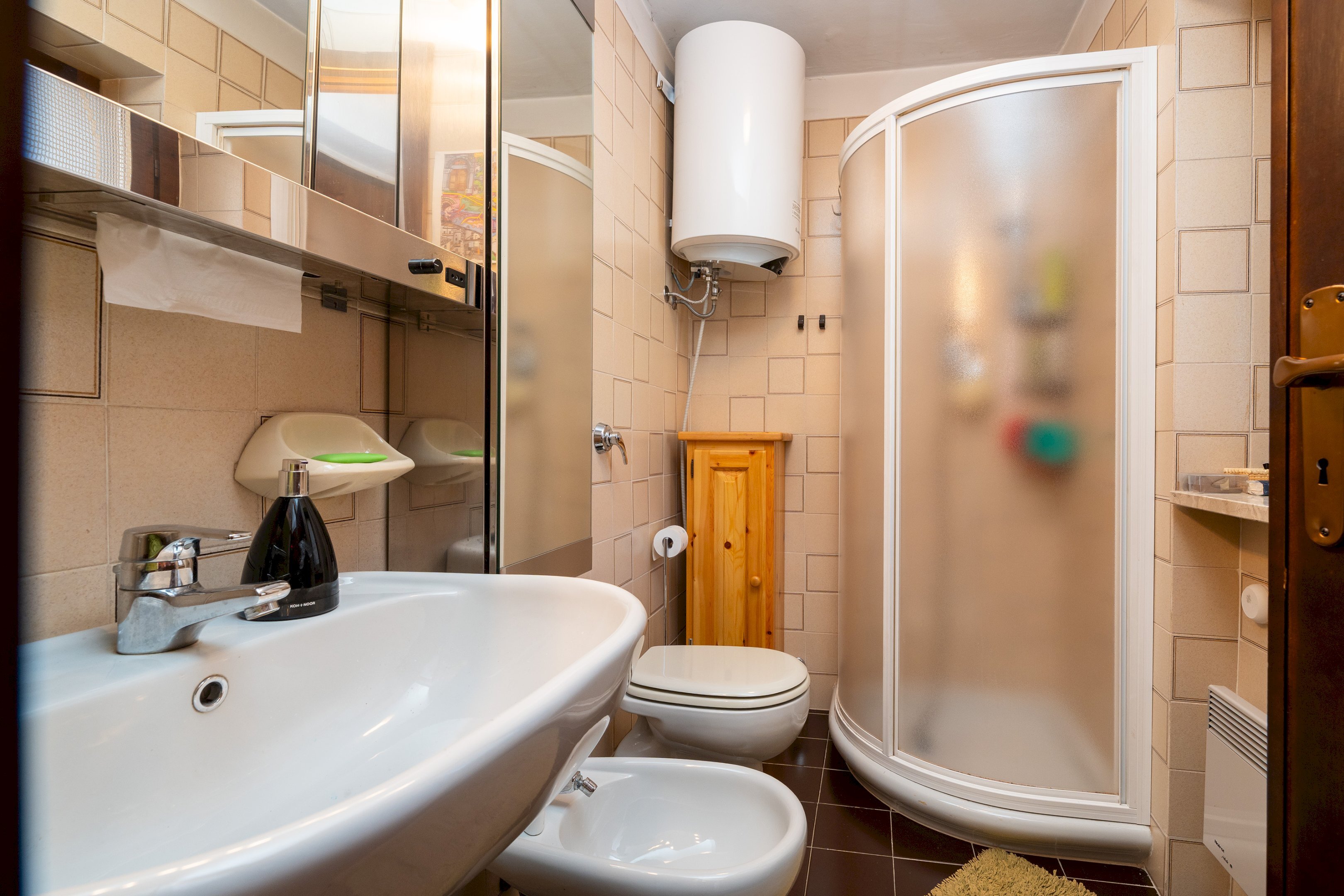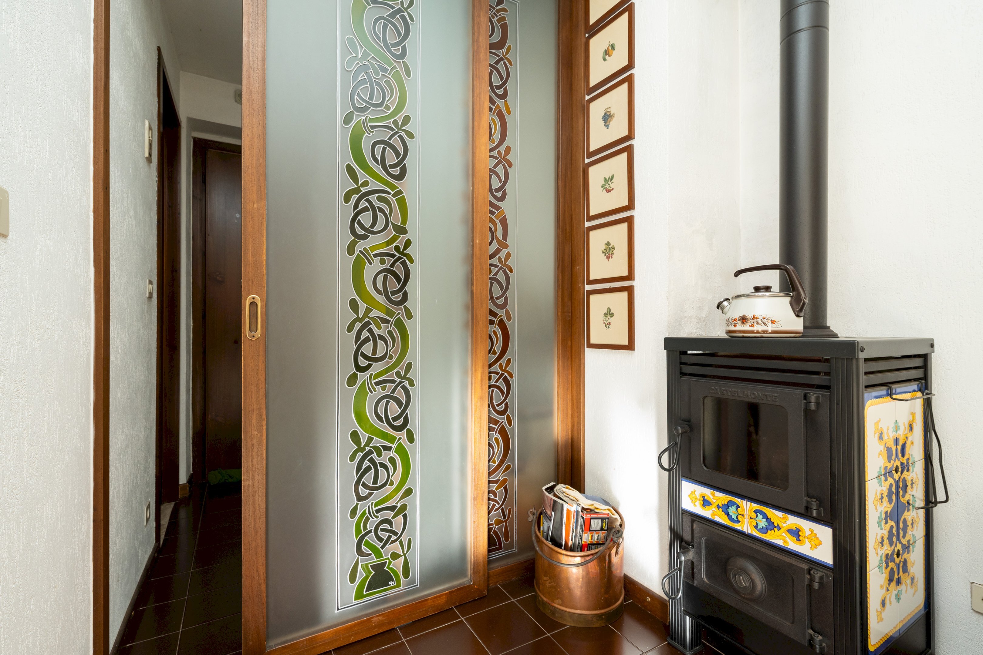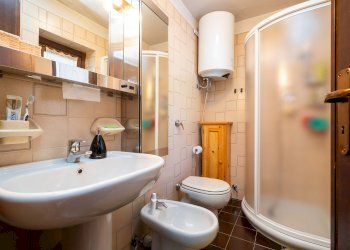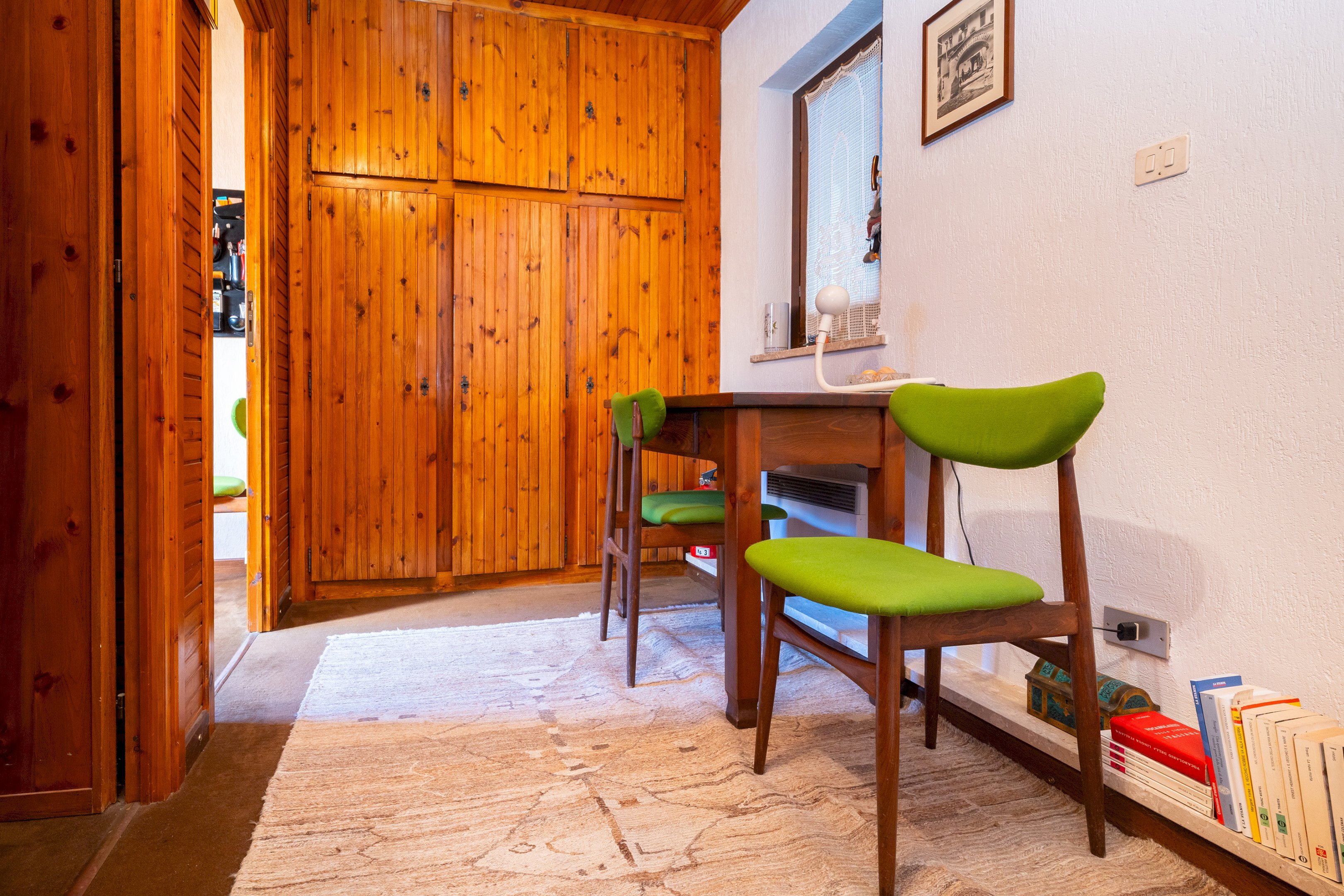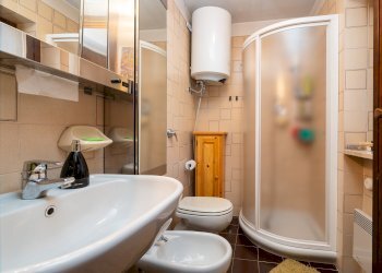 Il riscaldamento autonomo, garantito da una stufa a legna e da termoconvettori elettrici, rende l’appartamento confortevole in ogni stagione. A completare la proprietà vi sono una cantina, attualmente organizzata come pratica lavanderia, e un box auto doppio con soppalco, comodo sia per il parcheggio sia per ulteriore spazio di stivaggio.