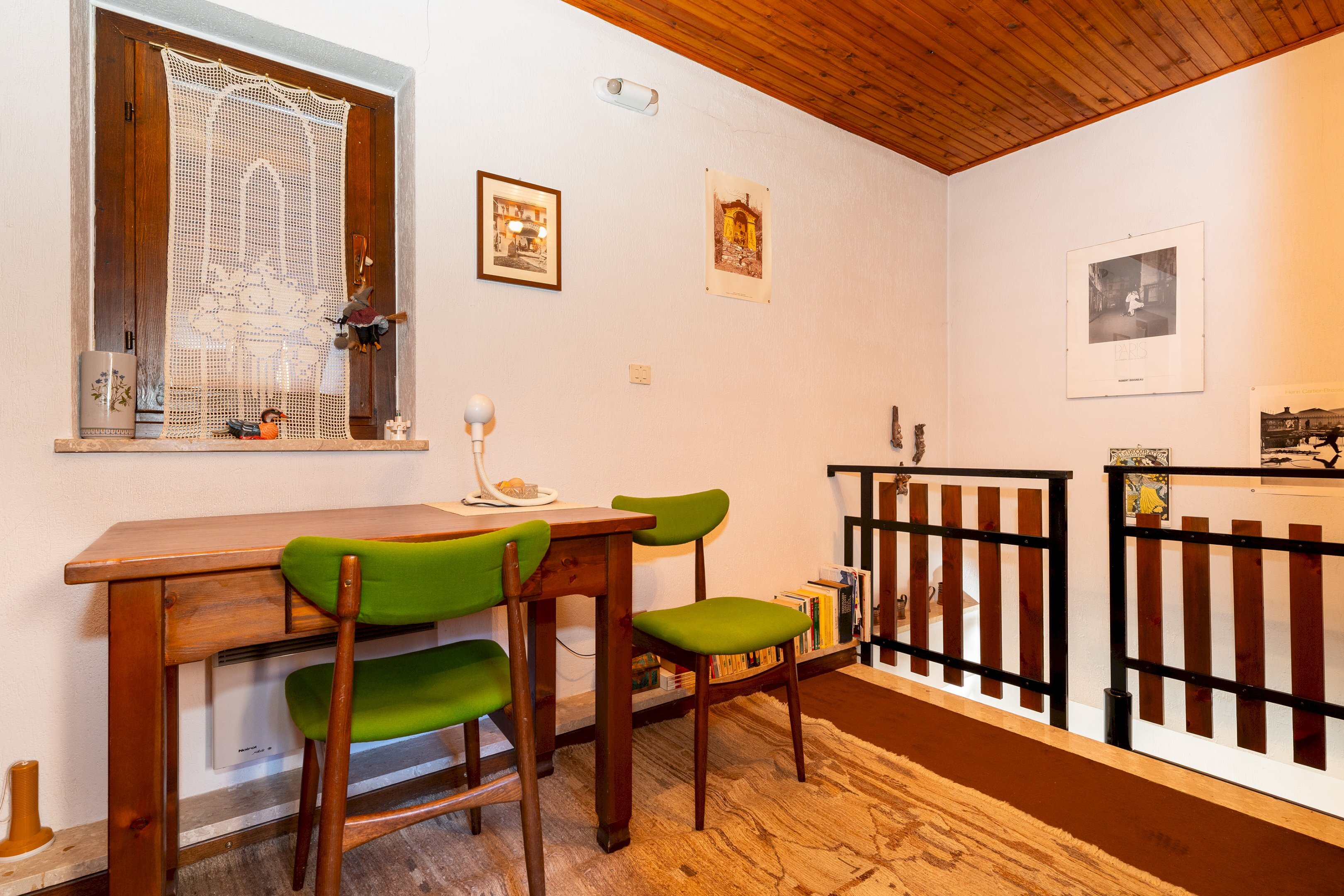 L’ingresso si apre su un soggiorno luminoso, valorizzato da una finestra e da una portafinestra che conduce al balcone panoramico, perfetto per godersi la quiete della zona. Sullo stesso livello si trova IL bagno, dotato sia di doccia e finestra. Il piano superiore accoglie una piccola zona di disimpegno, facilmente utilizzabile come studiolo, che collega le due camere da letto, entrambe accoglienti e ben rifinite.
