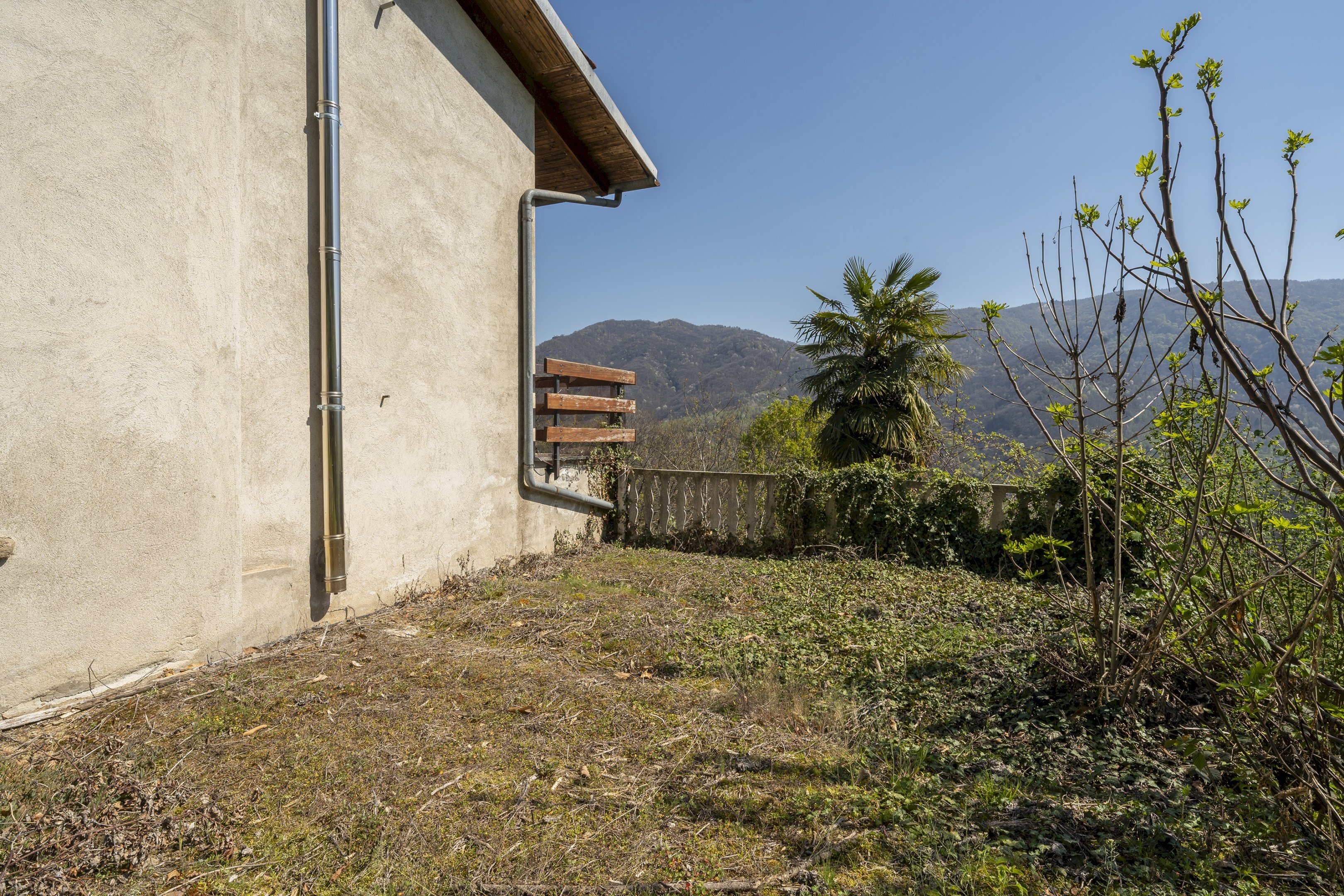 Qui la pace non manca e l'esposizione solare è super. L'accesso all'abitazione avviene percorrendo un piccolo vialetto ( proprietà dei vicini, ma diritto di passaggio a nostro favore) e qui ci accoglie un cortile / giardino privato (con terrazzo panoramico sito nel cortile) con vista sulla vallata. Sottostante l'abitazione, dove non si esclude la creazione di un accesso privato sul terreno di proprietà, troviamo un'area verde di 4326 mq. Oggi il terreno è incolto, ma vista la sua conformità (terrazzato) ed ottima esposizione, è ideale per coltivare. È oggi accatastato in parte come frutteto, in parte come vigneto.