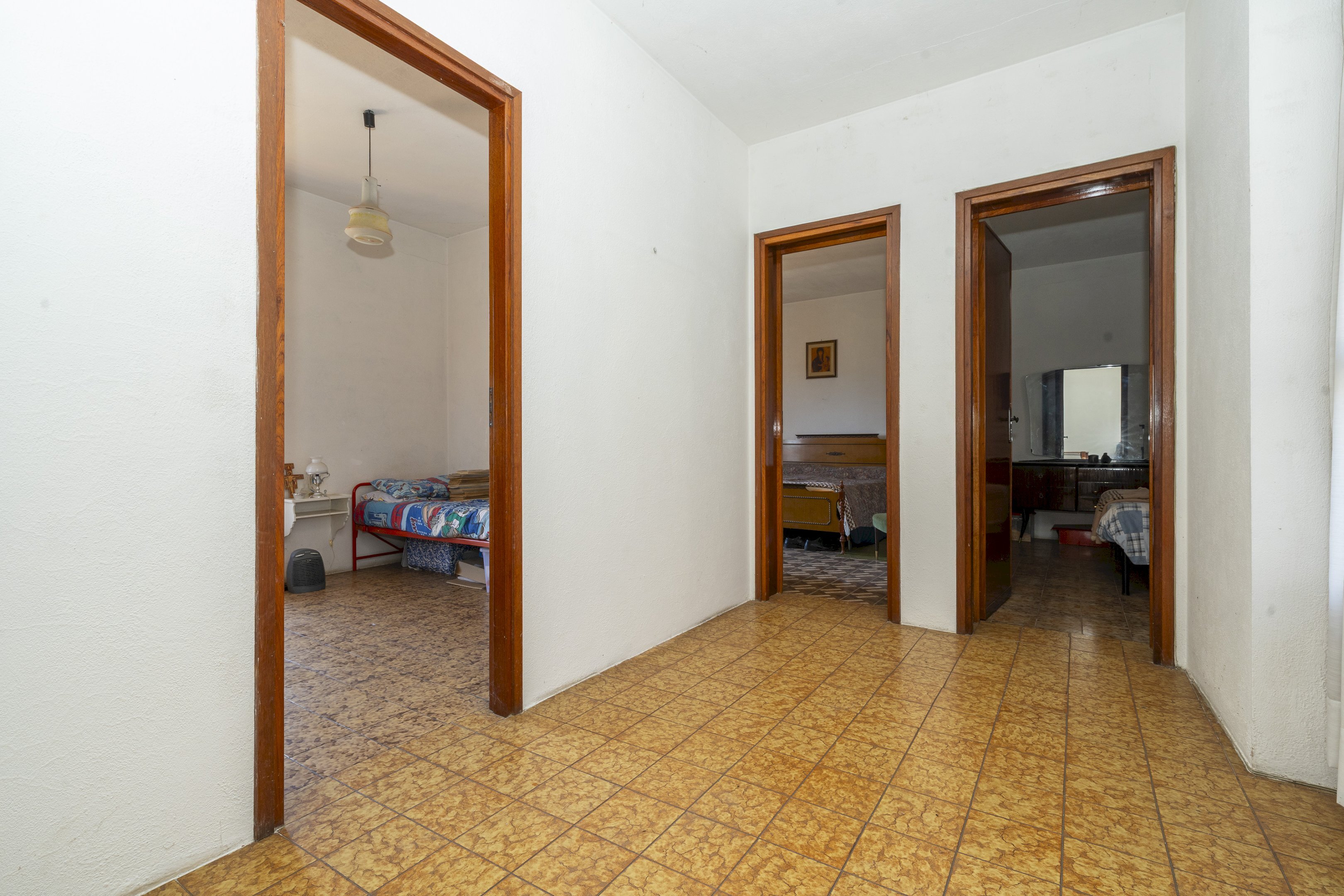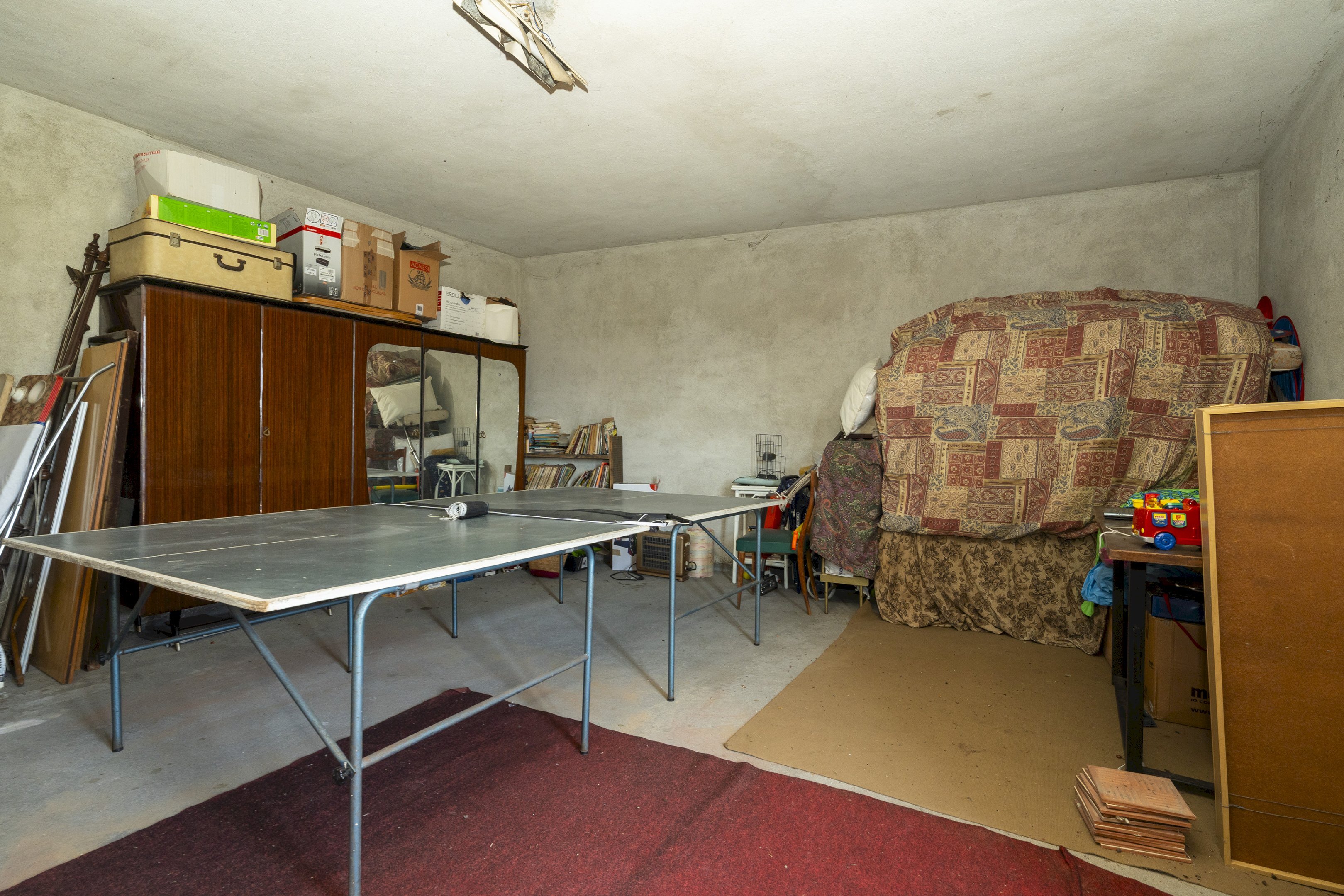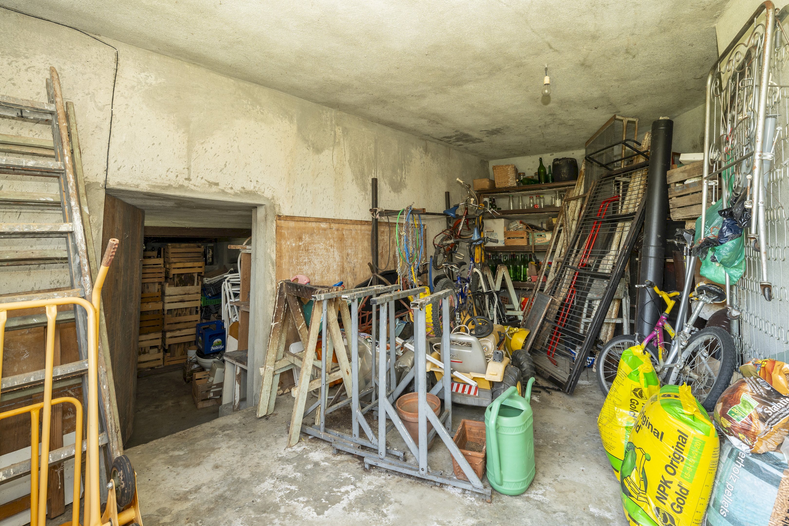 L'abitazione principale, invece, è sviluppata su tre livelli. Al piano terra trovano spazio due locali ad uso magazzino, di cui uno con cantina annessa al piano interrato. Essi sono idonei per ritirare mezzi agricoli, legname per l'inverno, ma anche le autovetture.