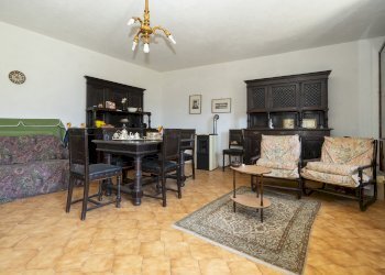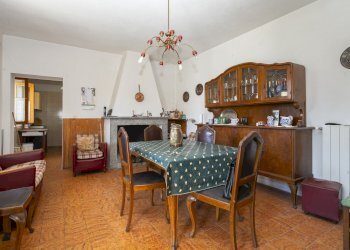 Il piano terra, invece, è composto da un ingresso su sala da pranzo con scenografico camino in pietra a legna. Qui, sul lato sinistro, troviamo la cucina con putagè (termo-cucina a legna che alimenta i radiatori). Sul lato destro, invece, ci accoglie un'ampia sala riscaldata con una moderna stufa a pellet. Il piano superiore è collegato internamente con una comoda scala interna in legno. La sua peculiarità è la presenza di tre camere da letto oltre ad una quarta stanza usata oggi come grande ripostiglio/ stanza giochi per i più piccini. Il bagno, infine, è finestrato con vasca da bagno e boiler elettrico per l'utilizzo dell'acqua calda sanitaria. Vi son, ancora, due balconi fronte ingresso panoramici ed un patio sito sul retro. Confinante con il cortile dell'abitazione retrostante, invece, troviamo un vecchio pozzo con possibilità di utilizzo.