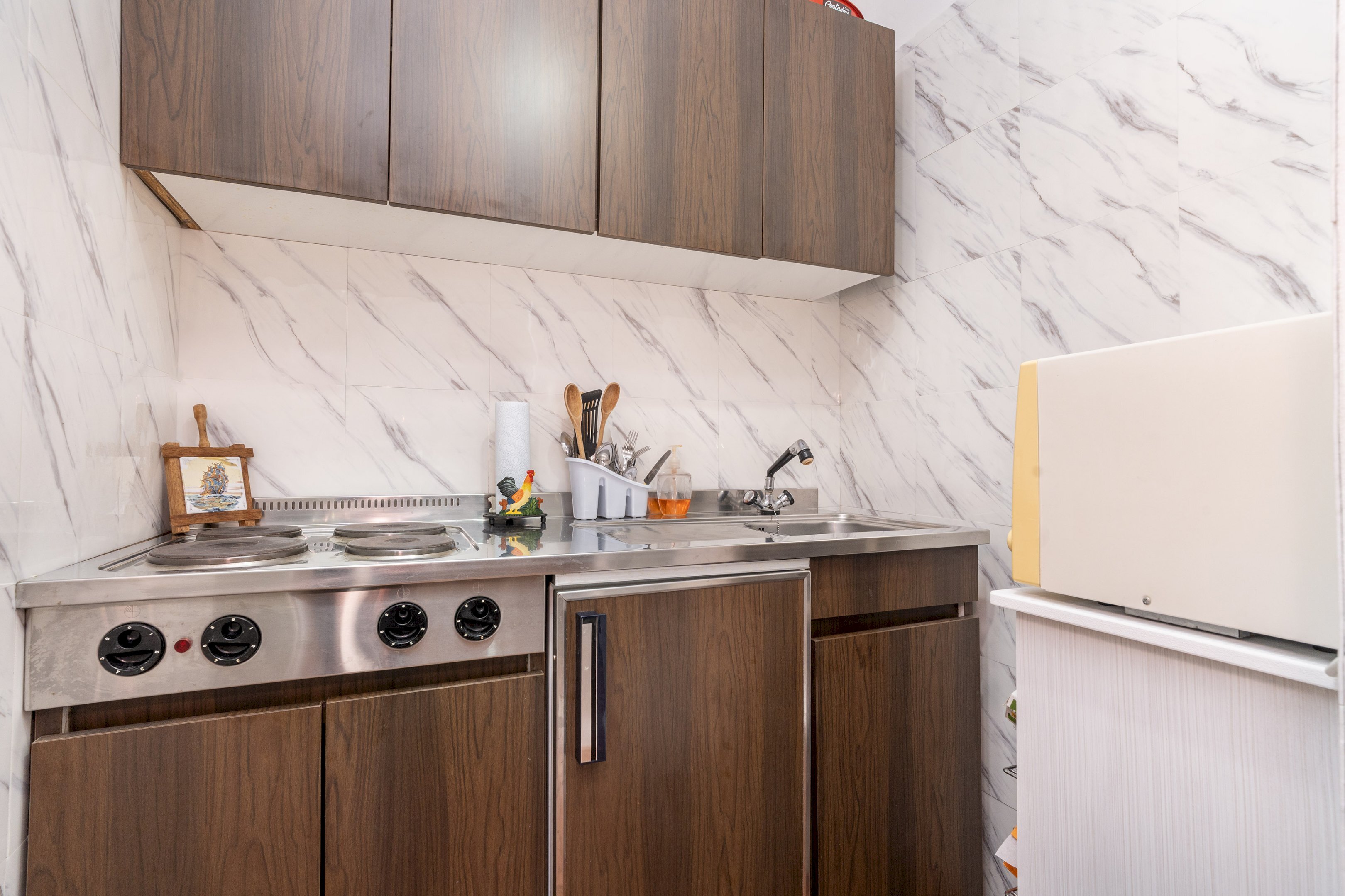 L’appartamento si apre su un luminoso soggiorno con angolo cottura, ambiente accogliente e funzionale pensato per i momenti di relax. La zona notte è composta da una comoda camera da letto, mentre il bagno completa la disposizione interna dell’alloggio.