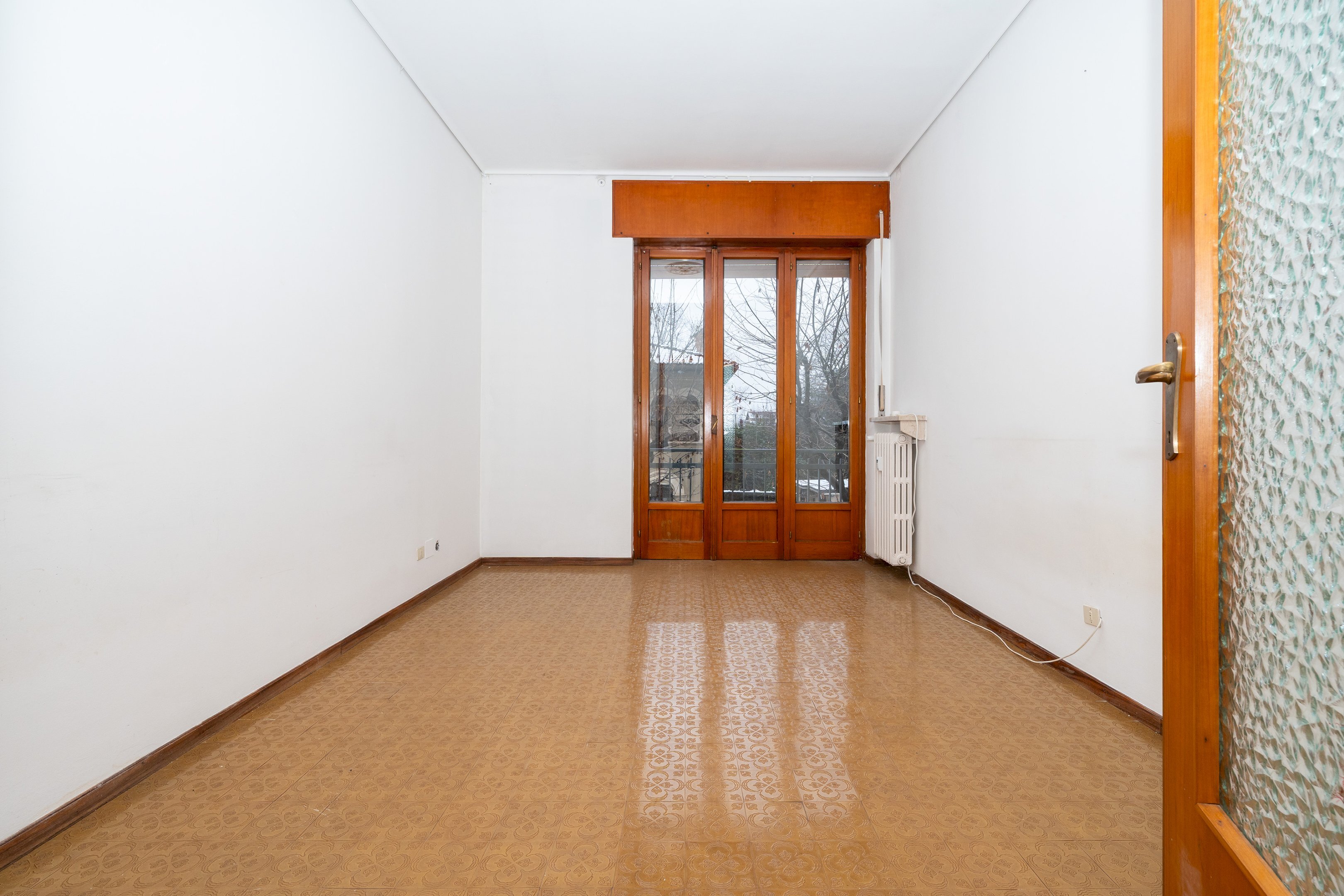 L’appartamento si presenta con una distribuzione funzionale degli spazi: l’ingresso si apre su un corridoio che collega ordinatamente tutti gli ambienti. La zona notte è composta da due camere da letto, entrambe ben illuminate e di dimensioni generose. La zona giorno include una cucina abitabile, perfetta per chi ama preparare i pasti in un ambiente accogliente, e un bagno di comode dimensioni.